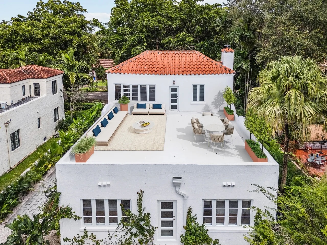 Residencia mediterránea construida en 1925, completamente restaurada con criterio contemporáneo por un diseñador italiano, donde el carácter original convive con una resolución elegante y equilibrada. Ubicada en el corazón de Coral Gables, a pocos pasos del histórico Hotel Biltmore —como referencia urbana y de escala—, la casa se organiza a partir de espacios amplios y luminosos, con una planta fluida y grandes aventanamientos que conectan naturalmente con el jardín y la piscina, pensados para una vida interior–exterior serena.