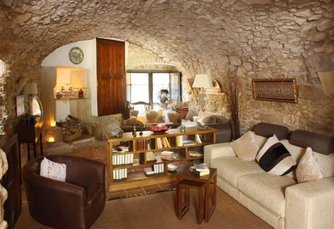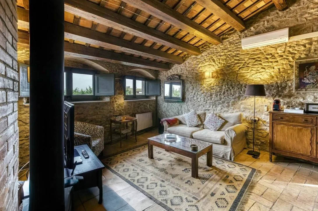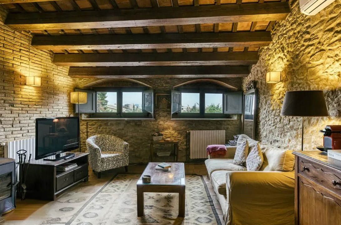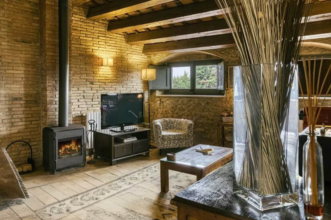 La masía se organiza en tres niveles, articulados en torno a espacios amplios y luminosos que conservan elementos tradicionales como volta catalana, muros de piedra y chimeneas originales, integrados con instalaciones modernas.