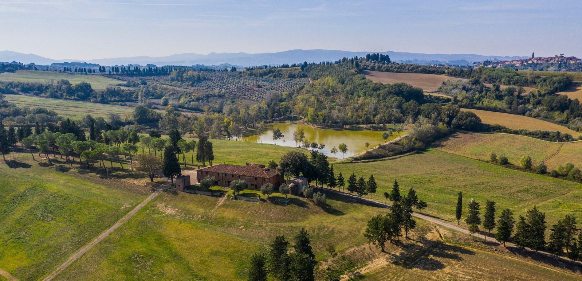 En el corazón de la campiña toscana, rodeado de viñedos, olivos y cipreses, se encuentra este antiguo monasterio con iglesia parroquial del siglo VIII. La finca ocupa 100 hectáreas que incluyen un lago, bosques con reserva de caza privada, tierras agrícolas y unos 400 olivos. El acceso se realiza por un camino bordeado de cipreses que conduce a la cima de una colina con una vista panorámica de 360°.